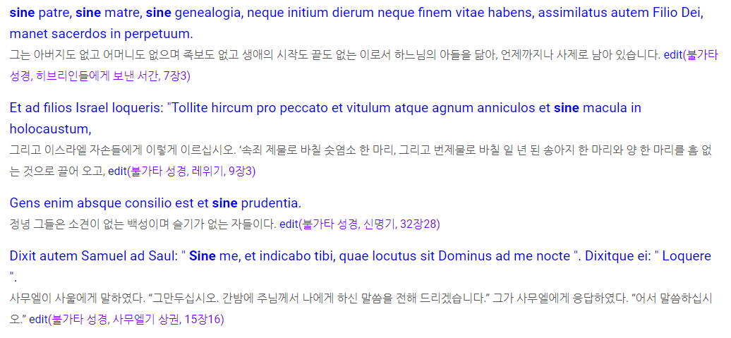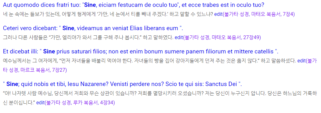 먼저 sine라는 형태를 공유하는 전치사 sine(~없이)와 동사 sino(허락하다)입니다. 전치사 sine는 항상 뒤에 탈격을 데리고 다니는 특징이 있는데, 모델이 이를 잘 파악한 것 같습니다. 반면 동사 sine는 뒤에 탈격이 따라오지 않습니다. 전치사 sine로 분류된 4번째 예시는 사실 동사 sino인데 모델이 잘못 분류한 경우입니다. 이는 sine뒤의 me가 탈격으로 보이기도 하기 때문입니다. (이 경우 해석은 '나 없이'가 되지요.) 이 때문에 모델이 혼동을 일으켰나봅니다.