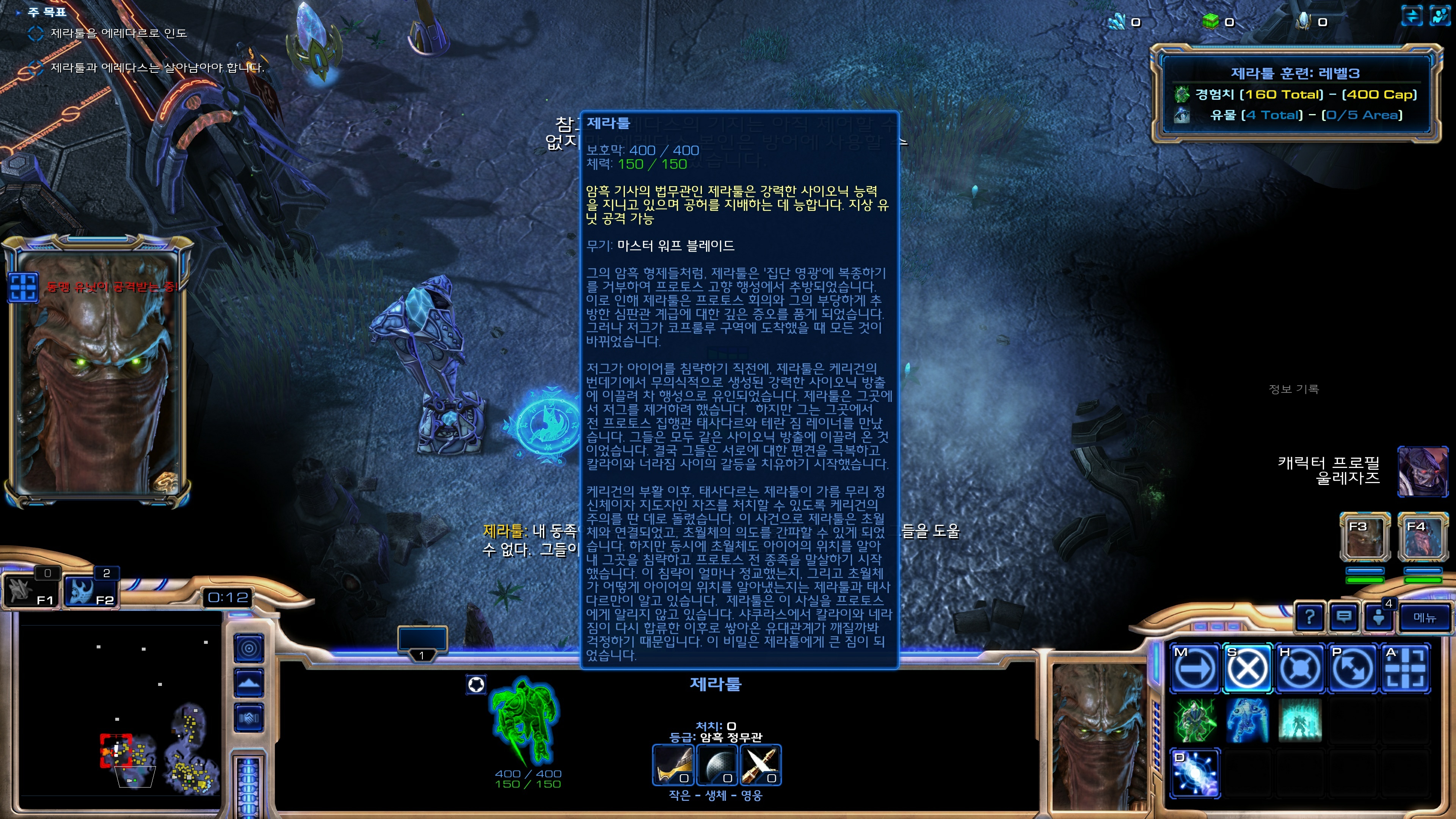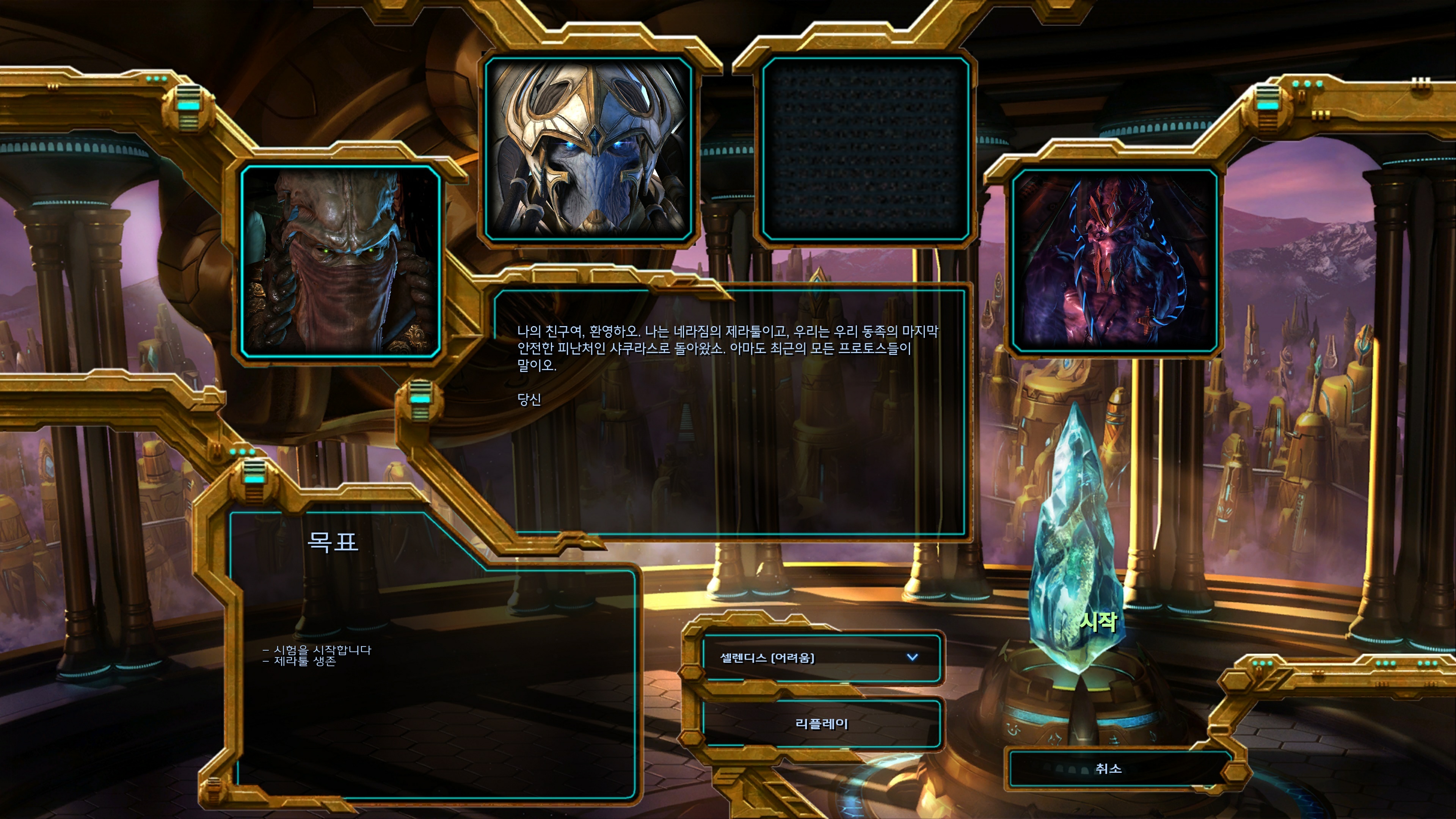 | Solar Ko, Alt., ex=10/1 | 적은 목표를 파괴하지 않을 것입니다. 먼저 저그 병력을 물리쳐야 합니다. 불가능합니다. |